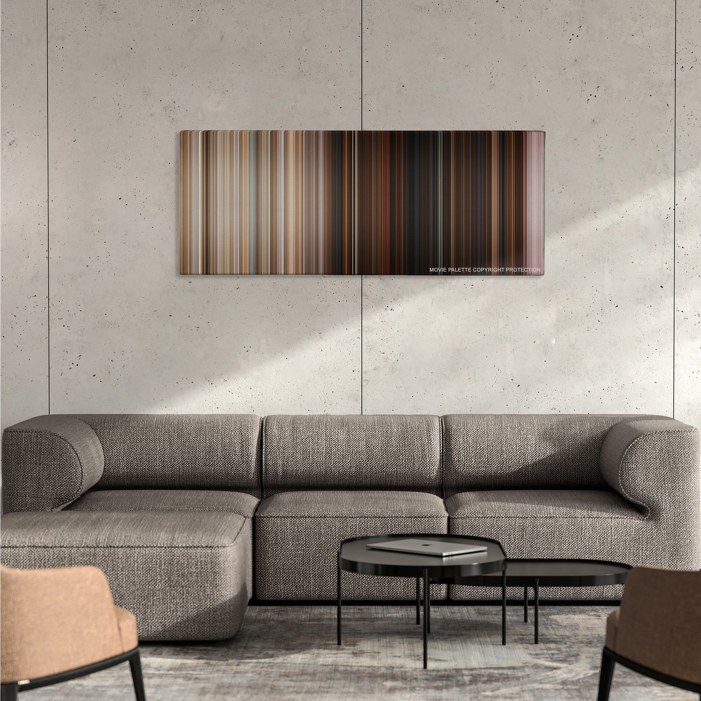 Our specialist graphic designers use patented technology to determine the prominent color from each movie scene. These colors are then strategically laid out, side by side, in chronological order. The width of each stripe represents the length of the scene.